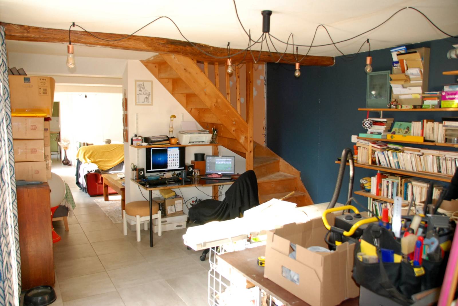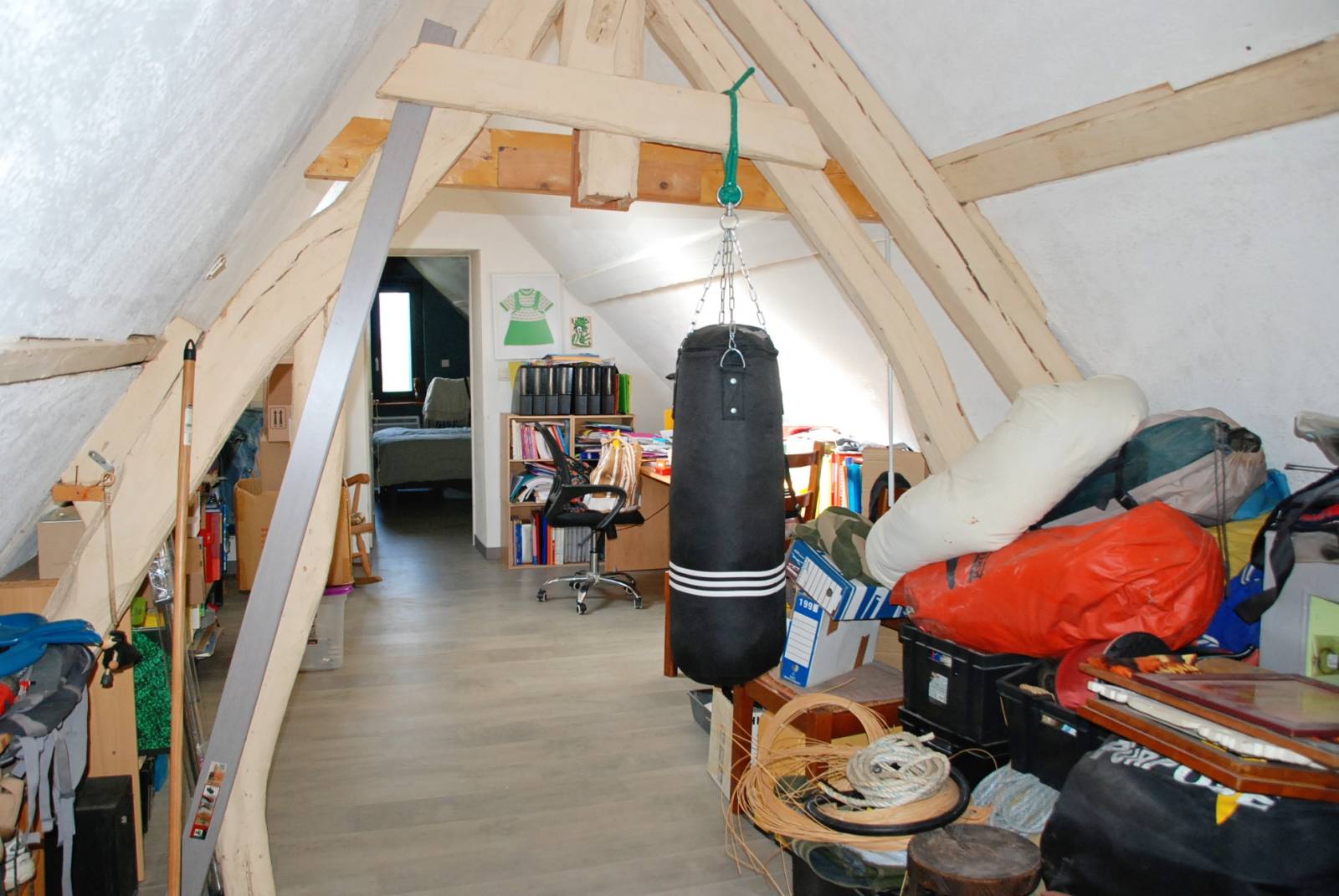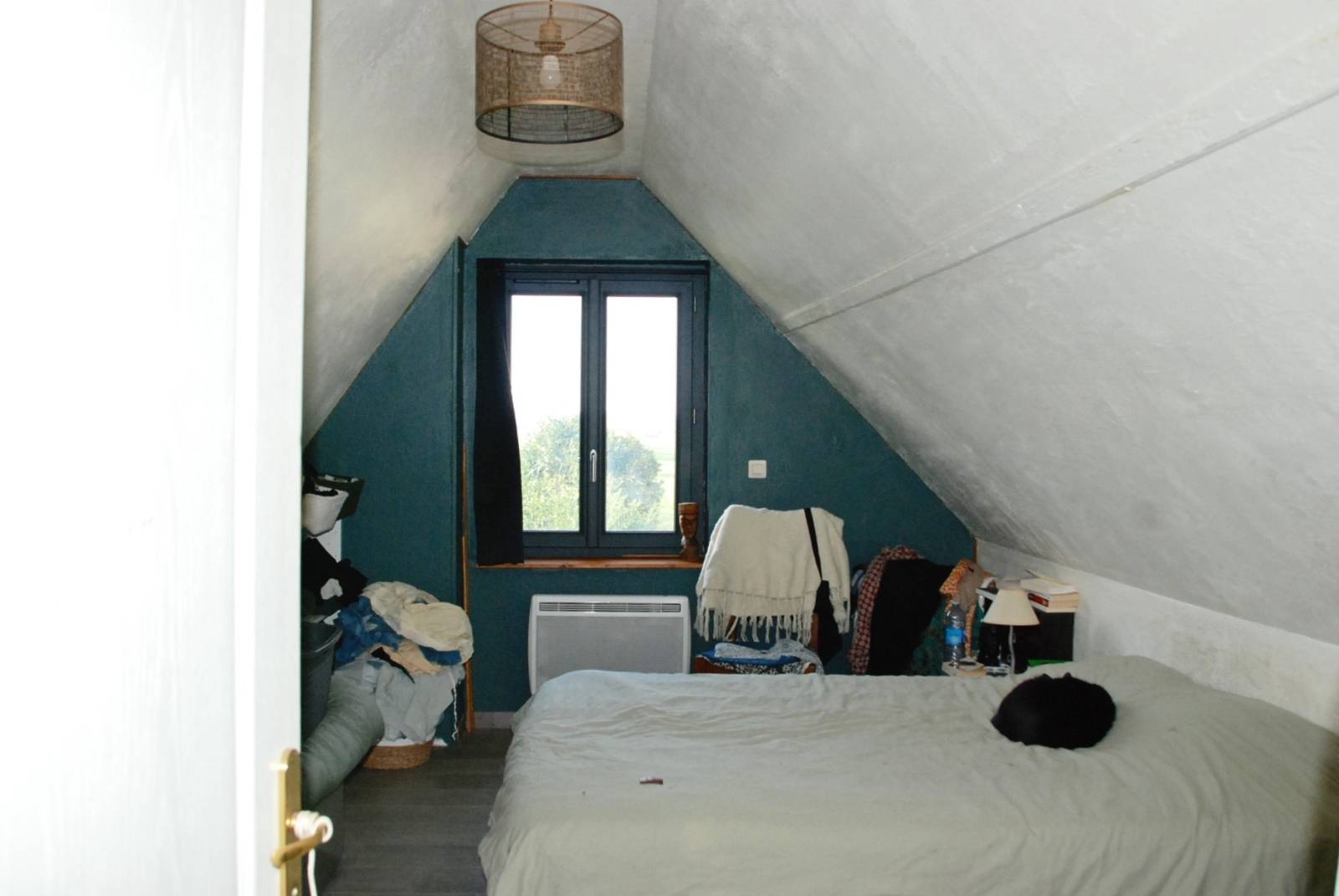 A l'étage, grande pièce palière, 1 chambre mansardée et 1 plus grande chambre.